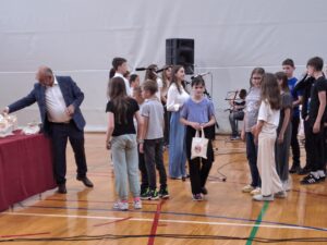 Naš školski zbor ovu je svečanost obogatio domoljubnim izvedbama, a pred kraj smo čuli i uvodni dio iz Epa o kralju Tomislavu Nikole Kordića, budući da ove godine obilježavamo 1100 godina hrvatskog kraljevstva i krunidbe prvog hrvatskog kralja – Tomislava.