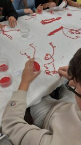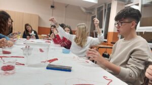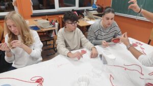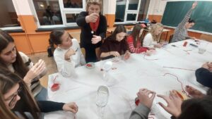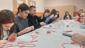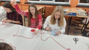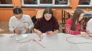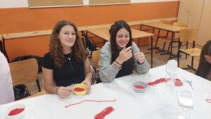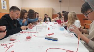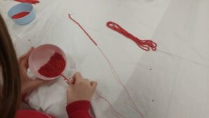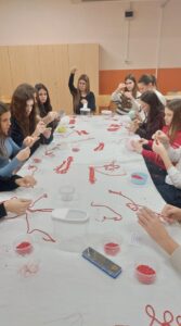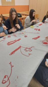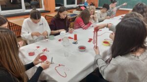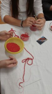 Prionuli smo praktičnom radu. Na stolu su se našle crvene staklene perlice karakteristične za stupnički kraluš. U početku je rad zahtijevao iznimno strpljenje i spretnost ruku jer je nizanje sitnih perlica teklo sporo. Međutim, uz stručno vodstvo naše voditeljice i međusobnu pomoć brzo smo svladali osnove. Spretne ruke s vremenom su postale sve brže i učinkovitije. Svi smo uspješno započeli izradu svojih komada nakita te smo s ponosom mogli vidjeti kako se tradicija doslovno niže pred našim očima.